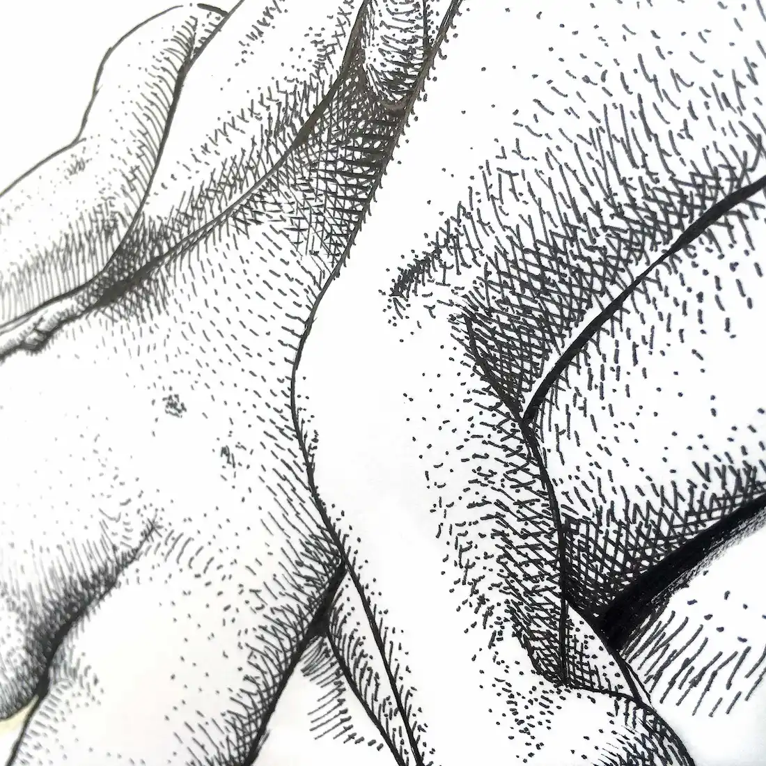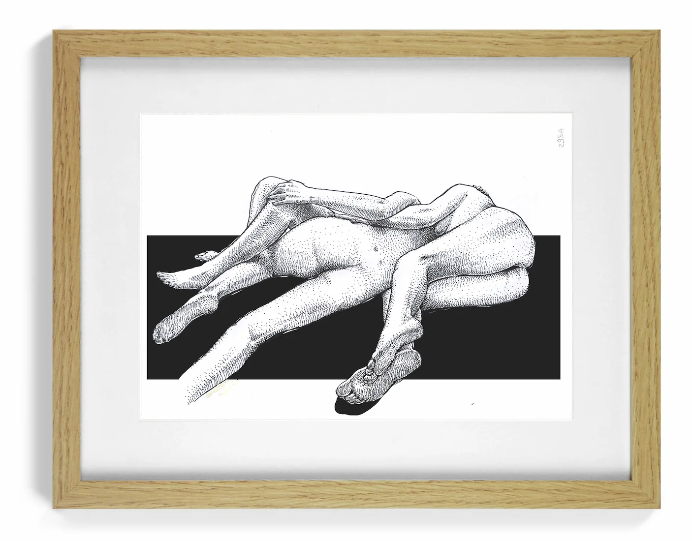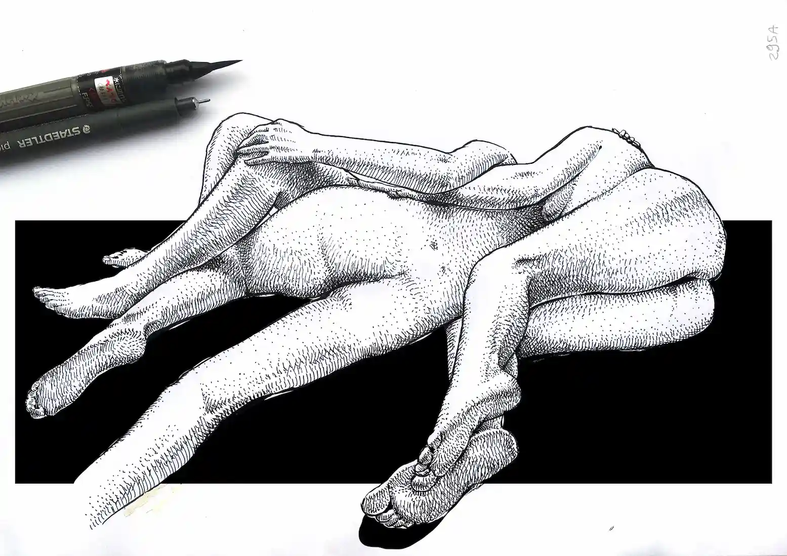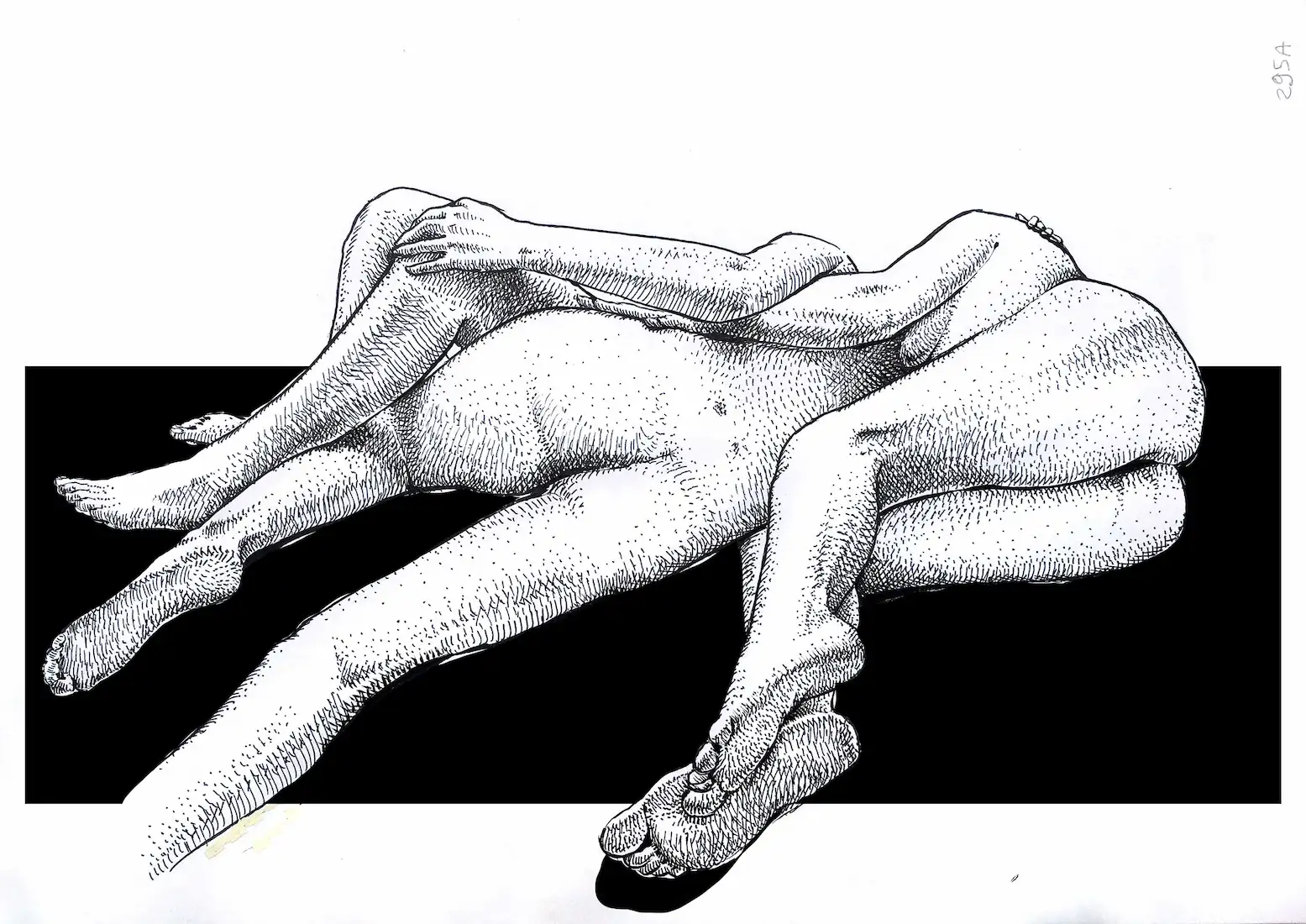 Bodies Entwined is an original erotic female nude ink drawing