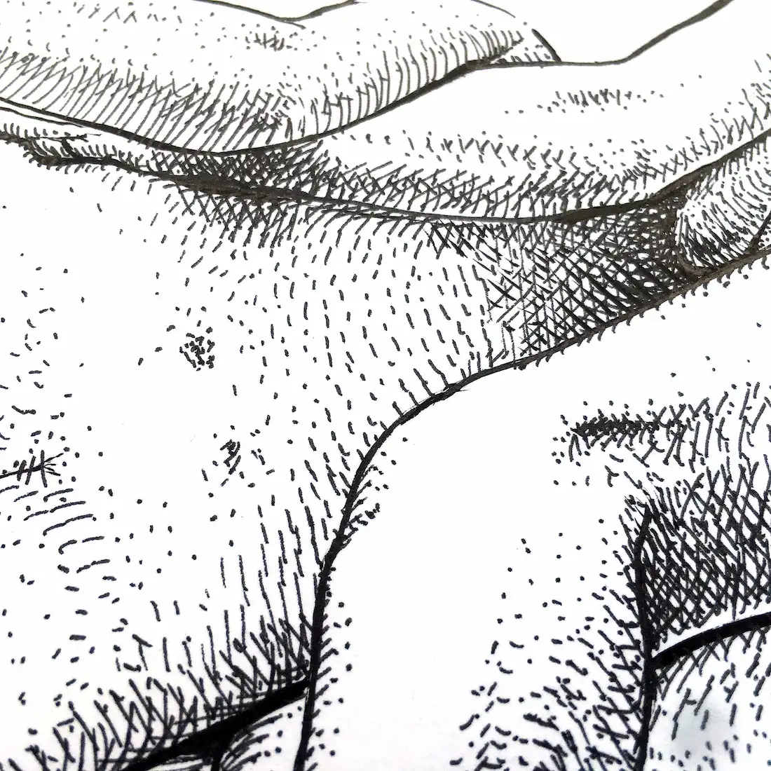 Drawn entirely in archival black ink on 240g fine art paper, the piece reveals a