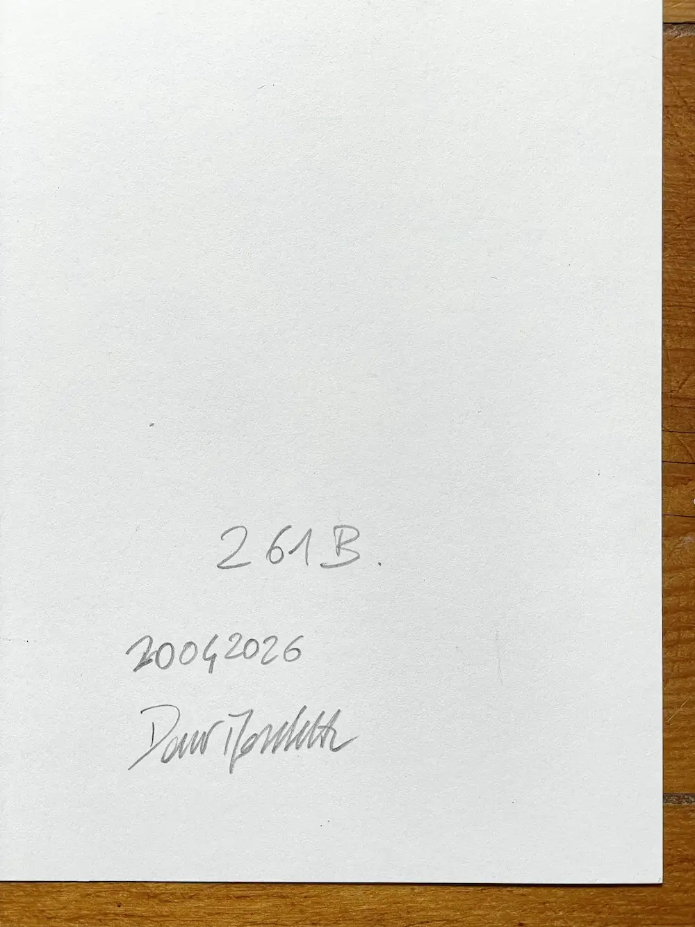 The artist signed the work on the back and dated it 20.04.2026. Therefore, the piece ships as a one-of-a-kind original, flat in protective packaging, ready to frame.