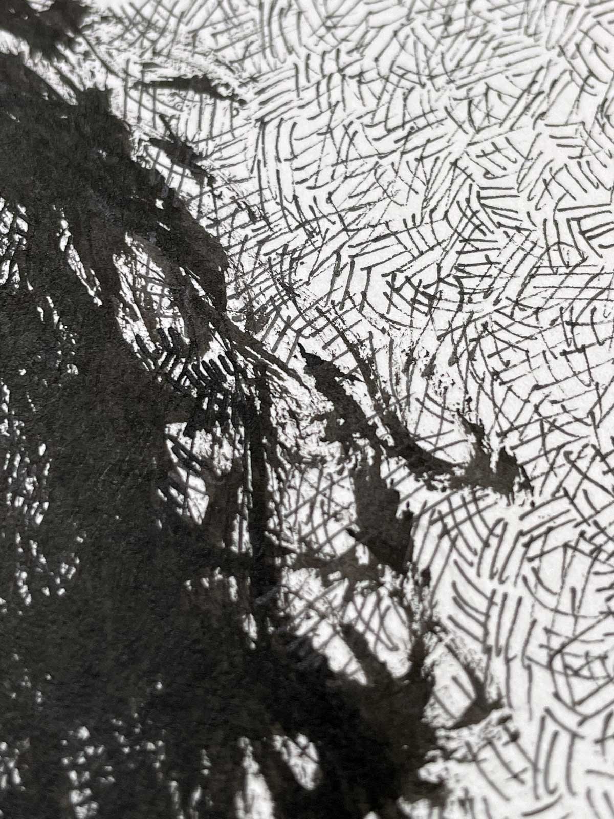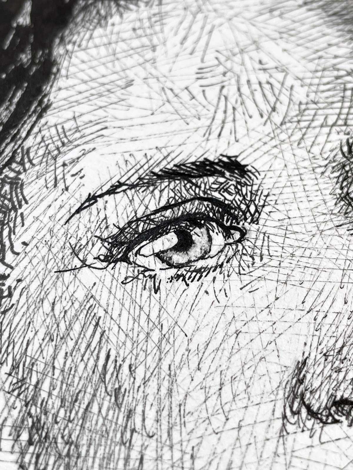 The title Memories suggests a link between viewer and subject that goes beyond the present moment. The drawing invites reflection on identity, presence, and the passing of time. Every handmade mark is part of a slow and patient process. Cross-hatched textures and bold dark areas balance fragility with strength. For this reason, collectors seeking an original female ink drawing artwork will appreciate both technique and emotion in this piece.